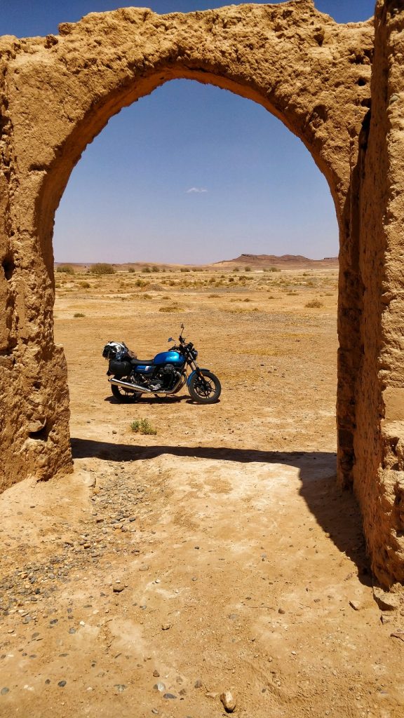Sta putin sui, ca orice motocicleta ce se odihneste pe cricul lateral. Ma indrept incet spre ea. Nici timpul nu pare ca se scurge in locul asta, deci notiunea de graba nu prea are sens. Frumoasa mai este motocicleta asta. O am deja de cateva luni bune dar de fiecare data cand ma apropii de ea nu imi pot stapanii un zambet. Un Moto Guzzi V7, un fel de cafe racer de felul ei, iat-o scoasa din oras, ducandu-ma hai hui prin Maroc. S-ar putea spune, la propriu si la figurat, ca suntem putin… plecati de acasa. Invart cheia in contact si apas usor starter-ul. Pistoanele pornesc promt iar Lucy se scutura usor stanga dreapta, spunandu-mi parca: “Suntem gata de drum!”