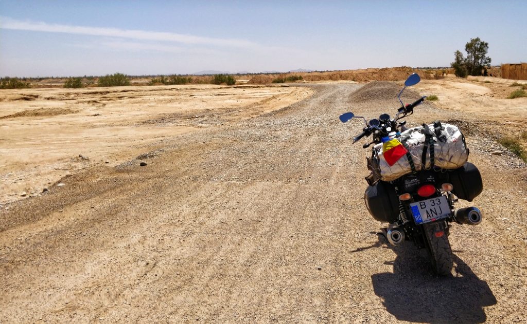 Imi aduc aminte ca in buzunarul de la geaca moto am niste grisine, luate undeva prin Italia, acum vreo 7 zile. S-au cam faramitat intre timp, da’ nu e momentul sa fac mofturi. Bun, deci “paine si apa”, dejunul campionilor. Nu este insa rau deloc. In calatoria asta m-am intors la modul de a manca pentru a trai, nu pentru placerea de a manca. Cum naiba sa fac oare sa mentin asta si cand ma intorc “dincolo”? Dincolo adica inapoi la viata “sendentara” cea in care calatoresti de la birou acasa si de acasa la birou. Oare este macar posibil? O adiere calda ma readuce in prezent. In loc sa ma racoreasca, vantul pare mai mult sa incurce situatia, venind parca dintr-un cuptor deschis.